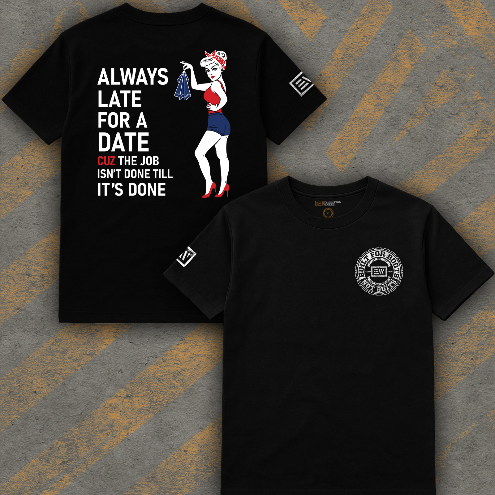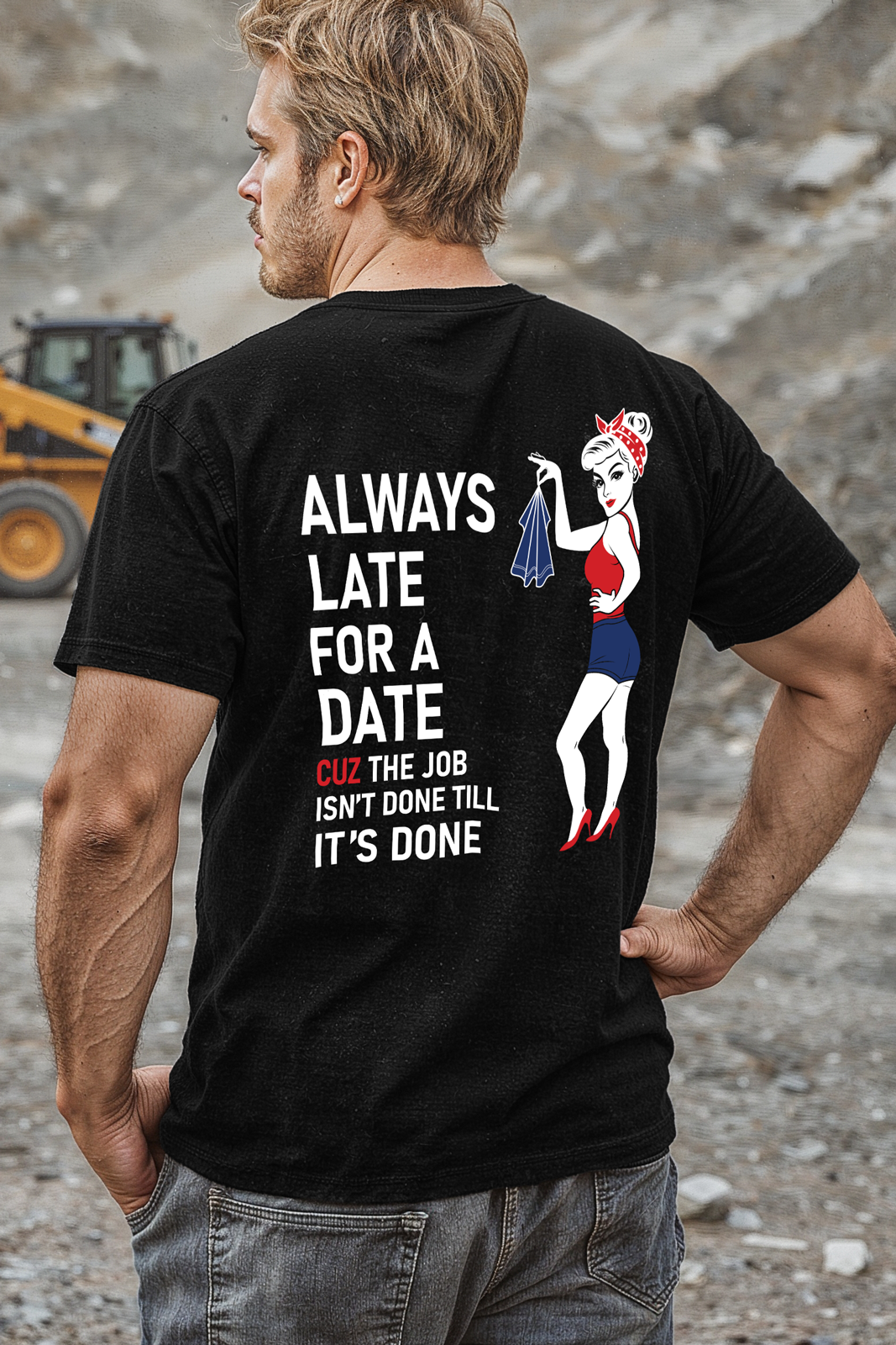 Well, then this shirt is for you! If a woman reads it enough times, she will start to get the hint that a working man works till the job is done, not until the clock runs out!