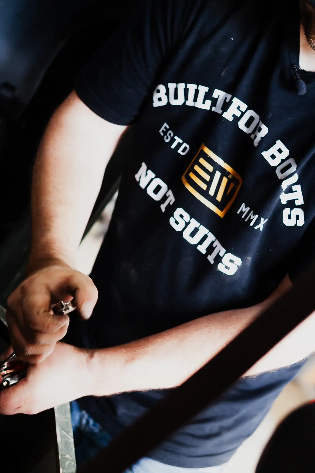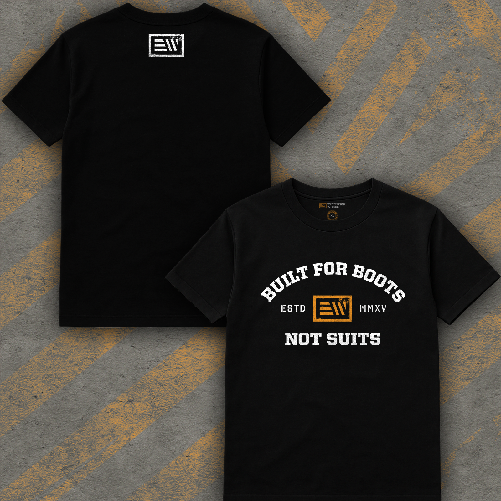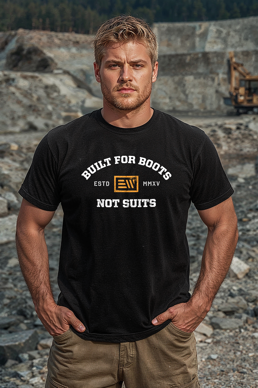 Built for boots not suits is the code of the working man who gets up before the dawn and works until long after the sun goes down. If a thermos of black coffee is what gets you through the day and a cold beer is the reward at the end, then wear this shirt with honor and live by the code.