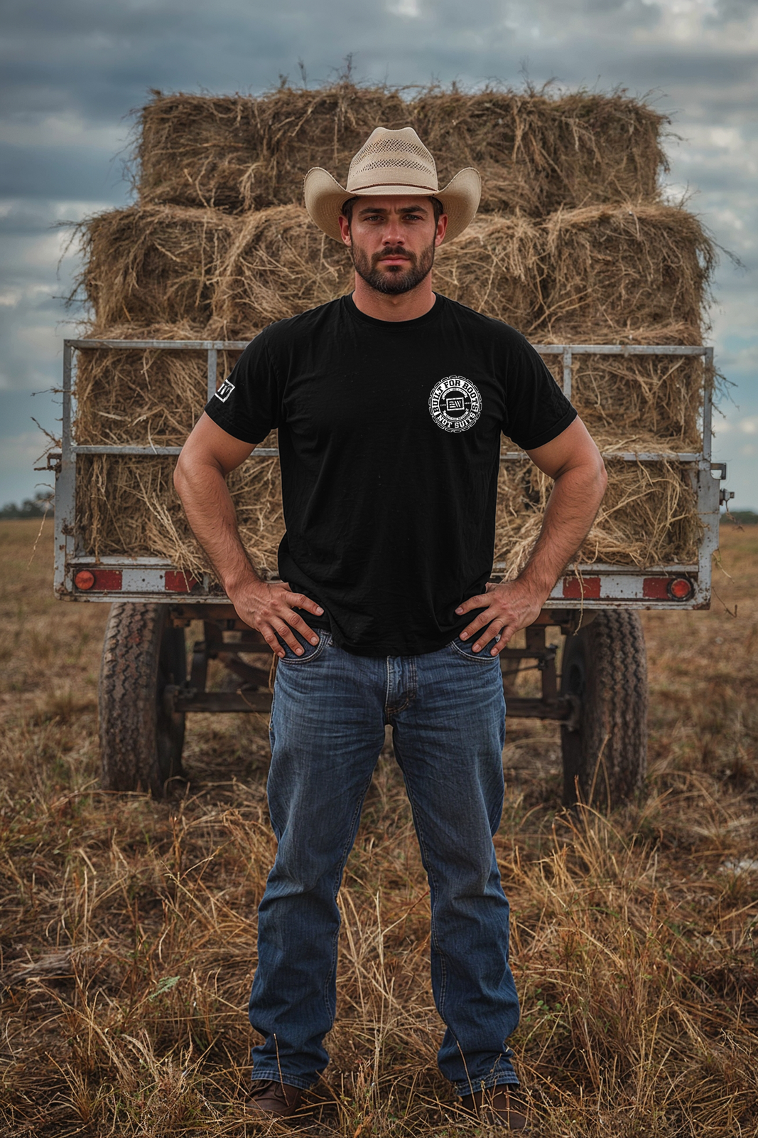 Tough shirt, holds up good after a week of ranch work. Design doesn't fade, cotton's thick but still breathes fine. The message hits different when you're doing this work the hard way. Took longer to ship than expected but worth the wait. Would buy again.
